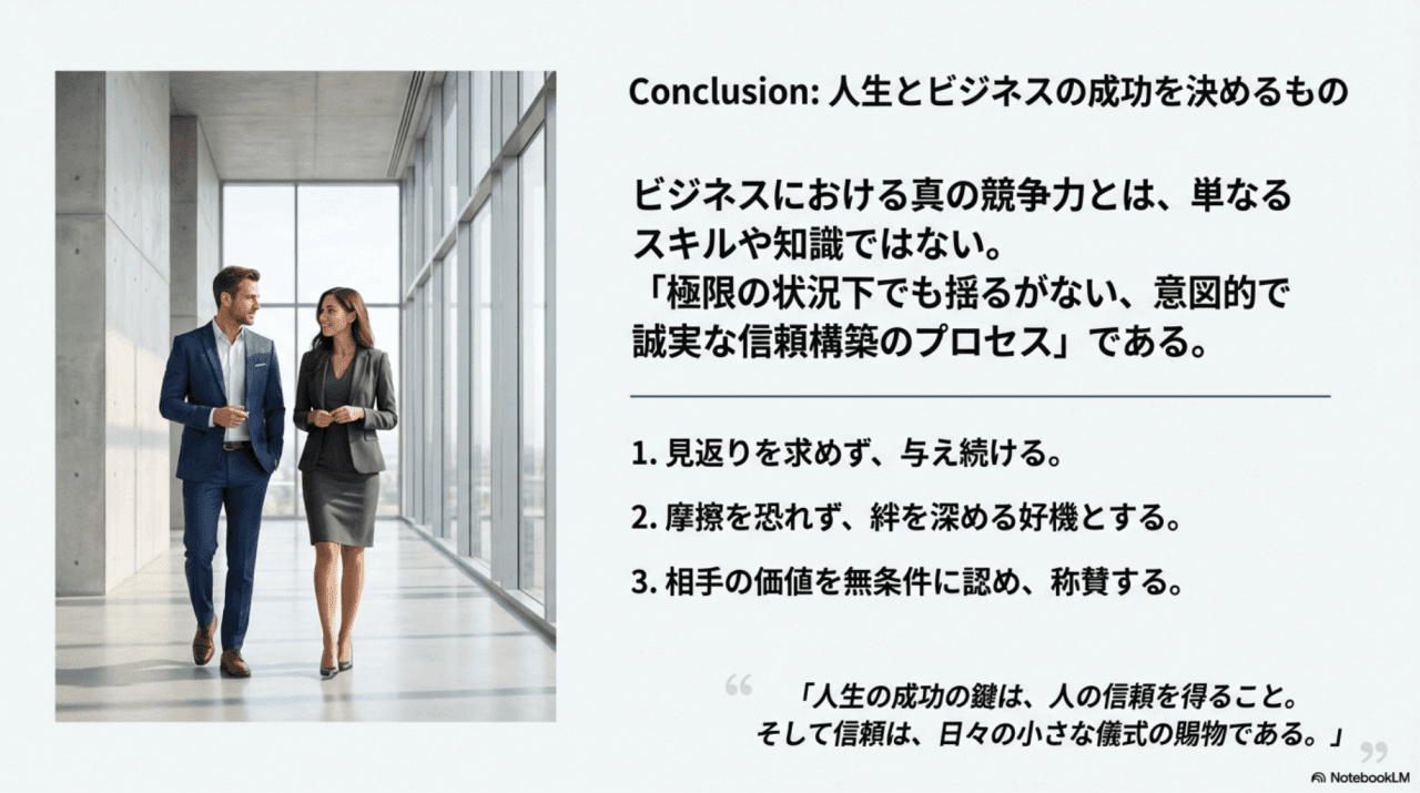 信頼構築は、あなたの思考と態度の選択によって制御可能な「技術」です。
